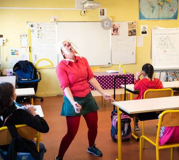 2019: “L’adulte, mode d’emploi”, conférence clownesque pour salle de classe et salle de spectacle. Tout public à partir de 6 ans. 150 représentations (toujours en tournée)
